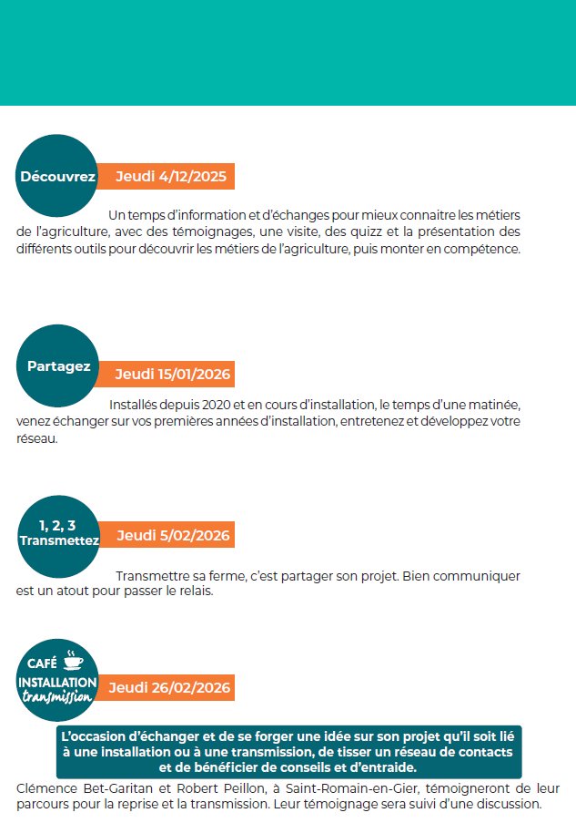 Pour la 4è année consécutive, et accompagnée de ses différents partenaires, l’Agglo propose les jeudis de l’installation et de la transmission en agriculture, une série de rencontres et d’échanges pour sensibiliser et informer porteurs de projet, futurs cédants, lycéens et demandeurs d’emploi sur les différents accompagnements possibles.