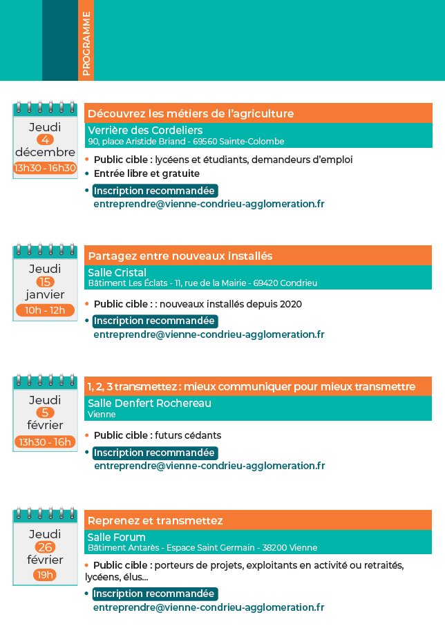 Programme complet et inscriptions sur : https://entreprendre.vienne-condrieu-agglomeration.fr