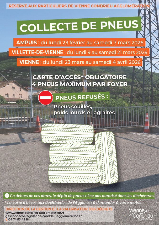 Vienne Condrieu Agglomération organise une nouvelle campagne de collecte de pneus usagés.