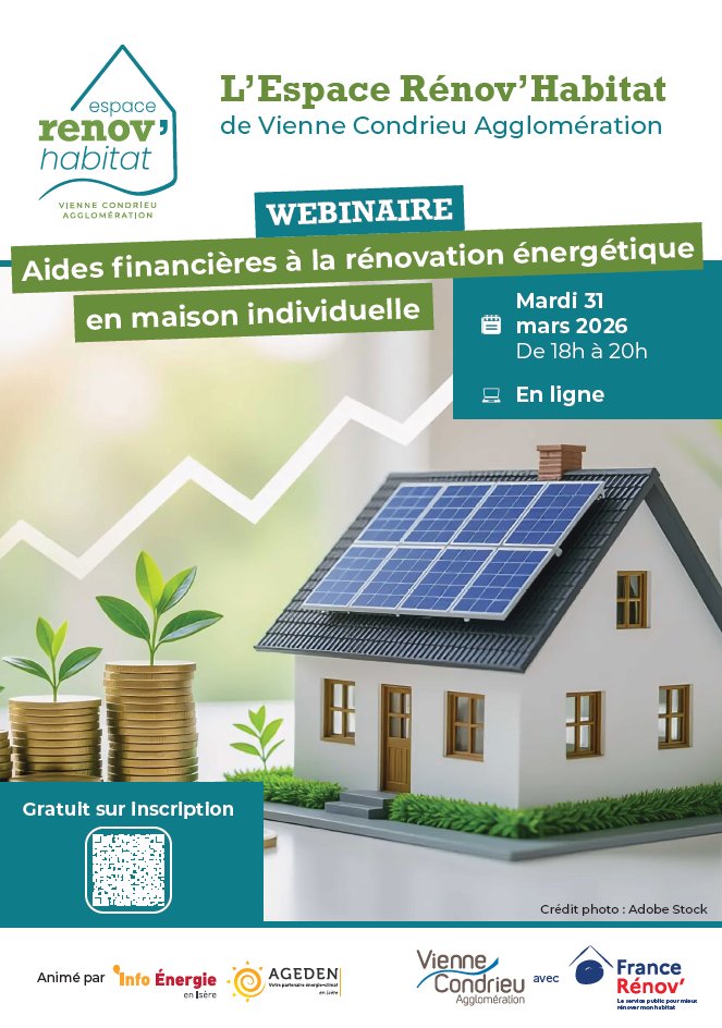 L’Espace Rénov’Habitat de Vienne Condrieu Agglomération vous propose un webinaire gratuit sur le décryptage des aides financières en maison individuelle.