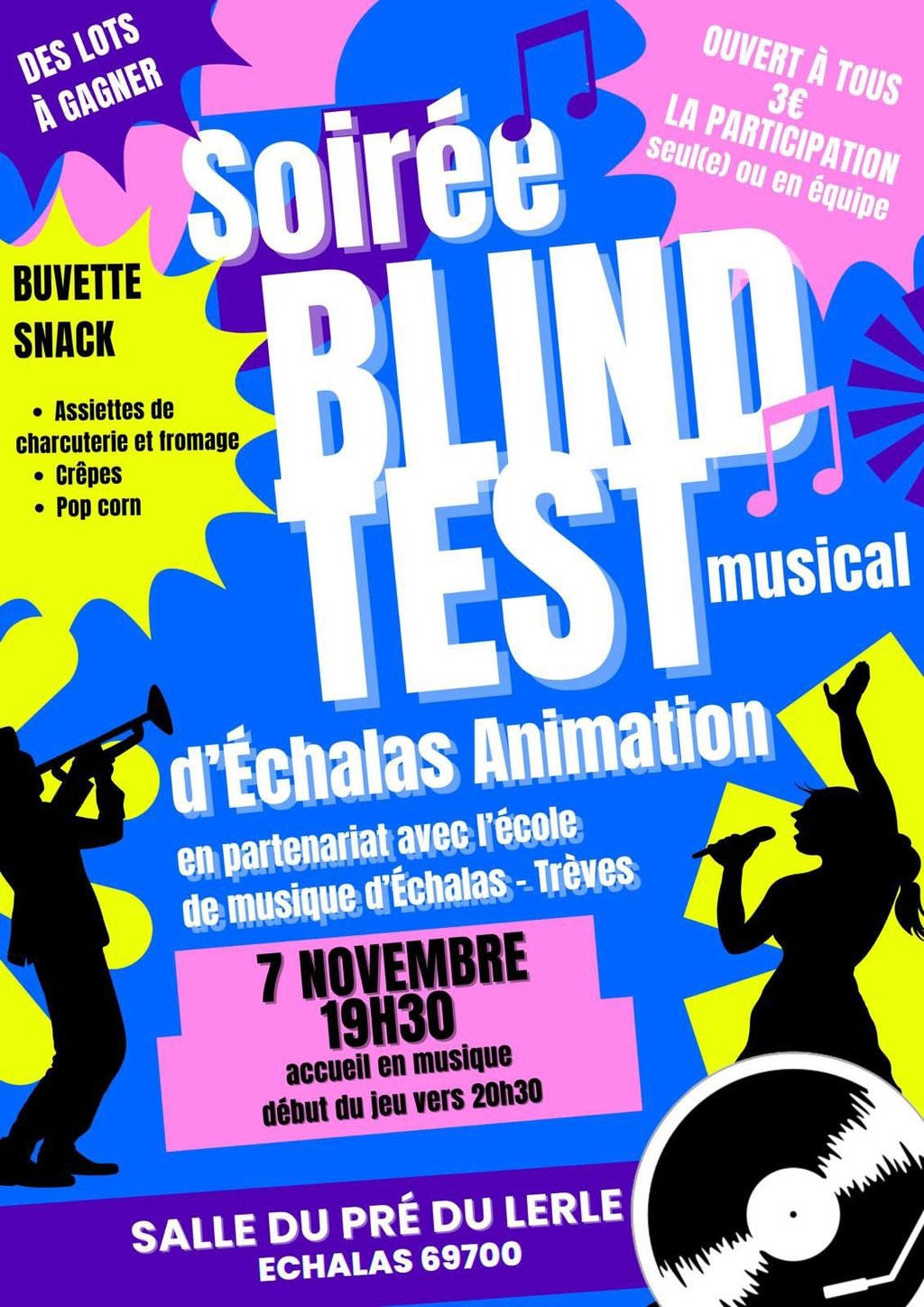 L’équipe d’Échalas Animation est heureuse de vous présenter son nouveau blind test (concours musical), le vendredi 7 novembre à partir de 19h30 à la salle du Pré de Lerle :