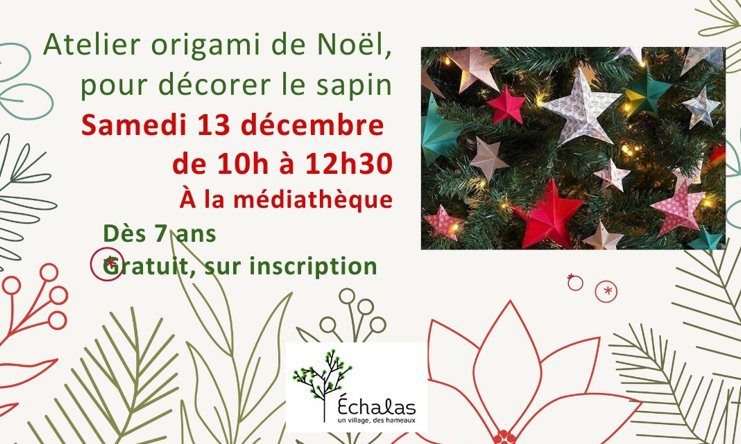 Atelier origami de Noël pour décorer le sapin, le samedi 13 décembre de 10h à 12h30 à la médiathèque.