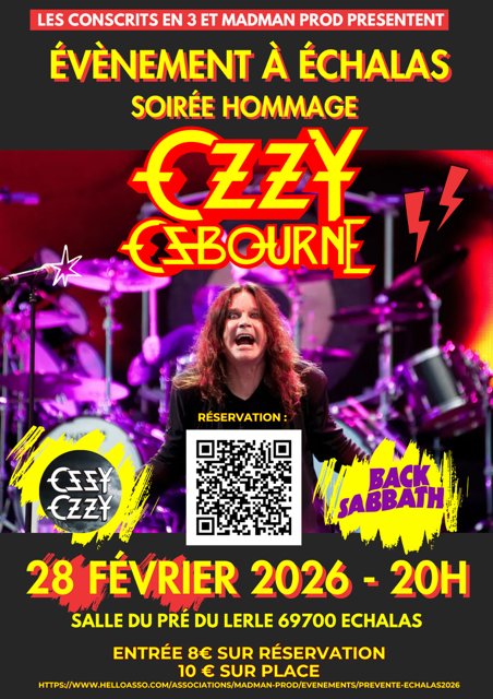 Le samedi 28 février, les conscrits des classes en 3 et Madman prod. vous présentent un événement exceptionnel à Échalas : soirée concert hommage suite à la disparition de Ozzy Osbourne, pionnier du hard rock.